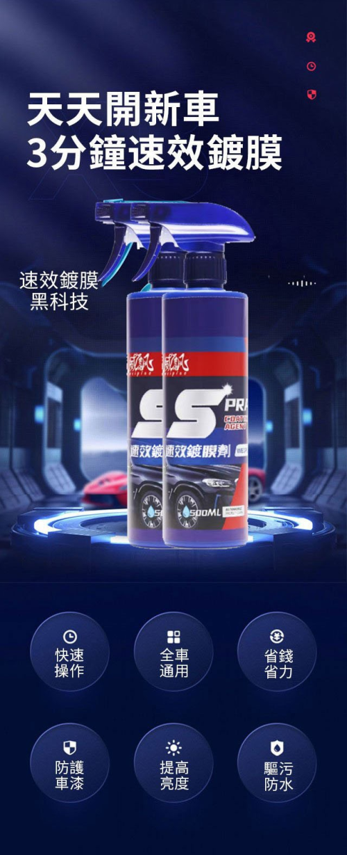 11分鐘前速效汽車鍍膜劑,去污+鍍膜,3分鐘養護漆面光亮如新,所有車色可用!鍍膜防護一瓶搞定!限時折扣 ! - 【特惠五入組】NT$1298