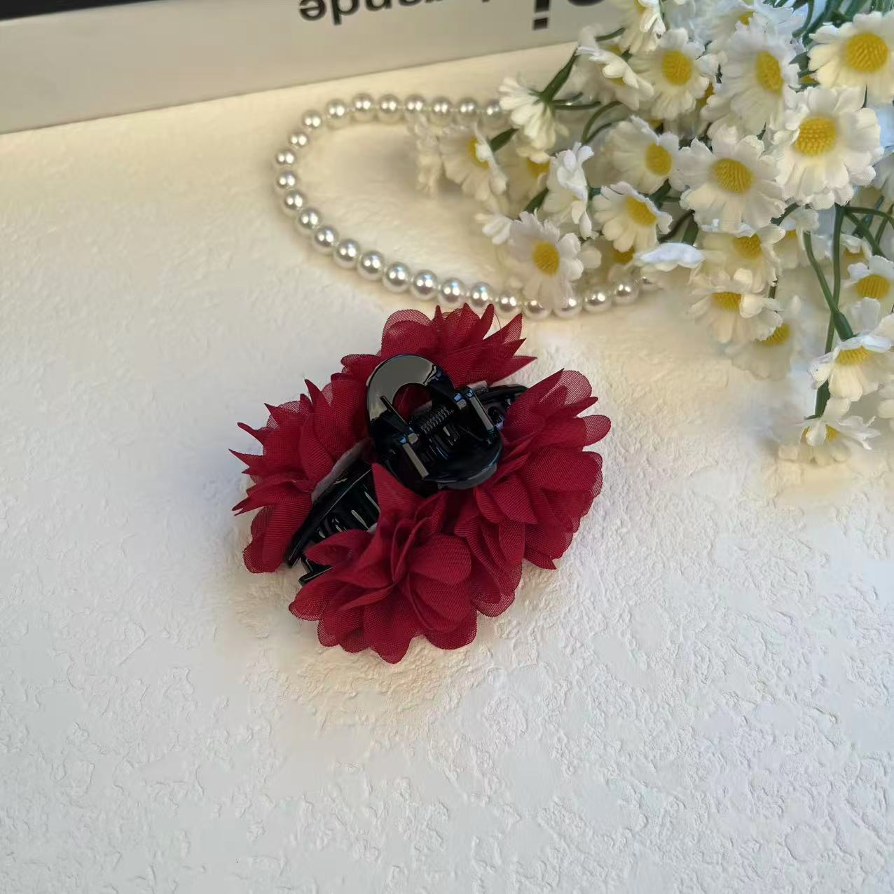 5分鐘前玫瑰花抓夾盤發頭花劉海側邊夾7Cm法式慵懶感半紮髮卡 - 【盤發頭花慵懶感半紮髮卡 一對裝】3入組-NT$1180