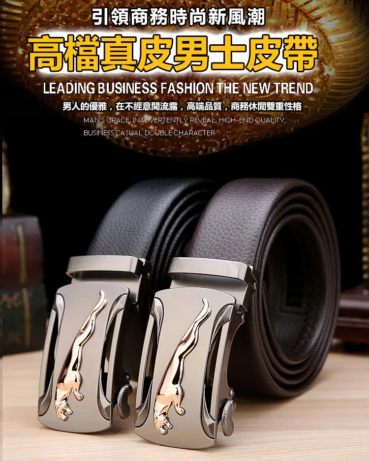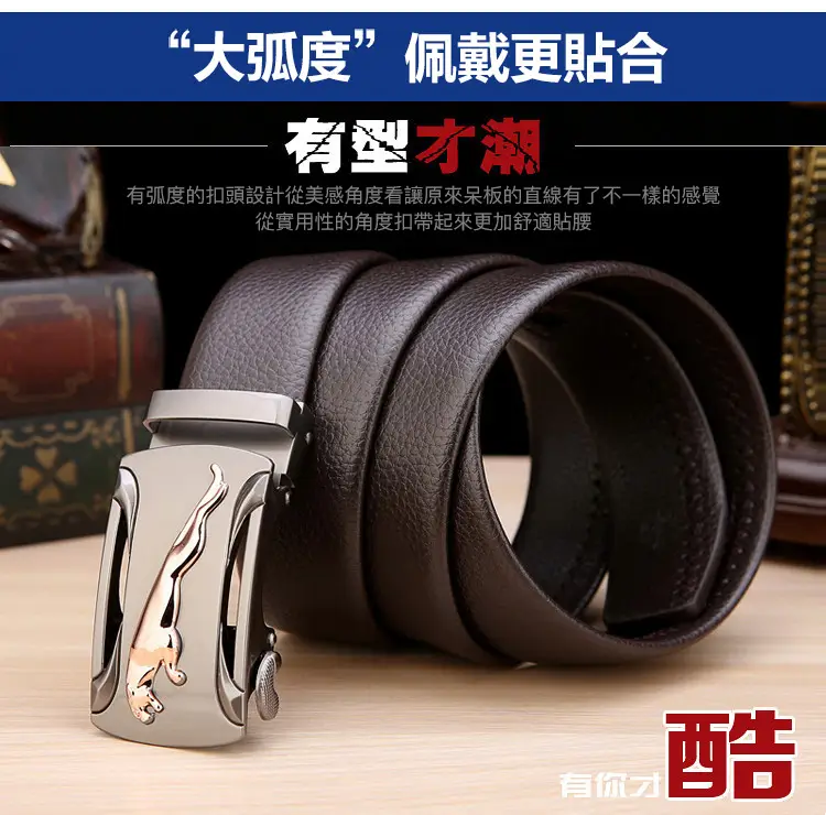 25分鐘前【官方站】男士獵豹自動扣真皮腰帶 【能用十年的真皮腰帶】 整張牛皮裁剪打造,純手工製作,耐磨耐折耐用,品質高端,彰顯男士成熟魅力