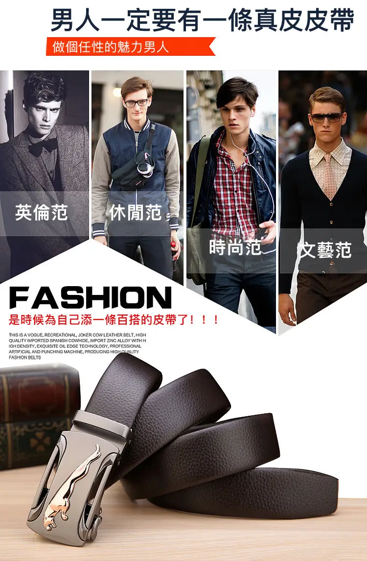4分鐘前【官方站】男士獵豹自動扣真皮腰帶 【能用十年的真皮腰帶】 整張牛皮裁剪打造,純手工製作,耐磨耐折耐用,品質高端,彰顯男士成熟魅力