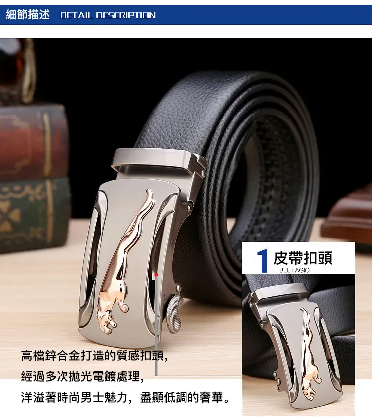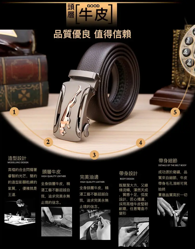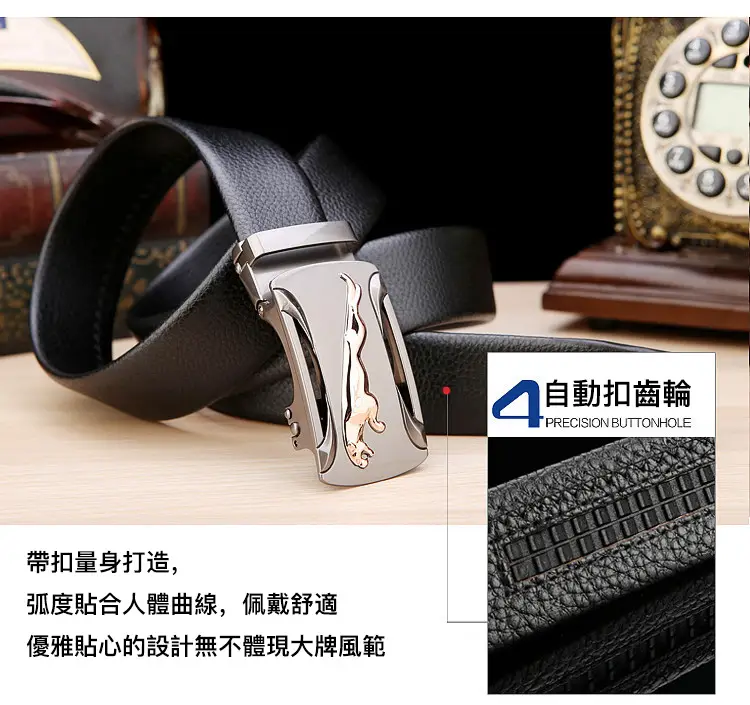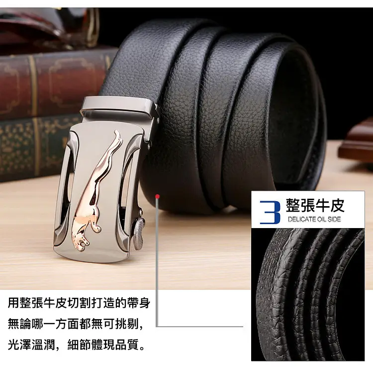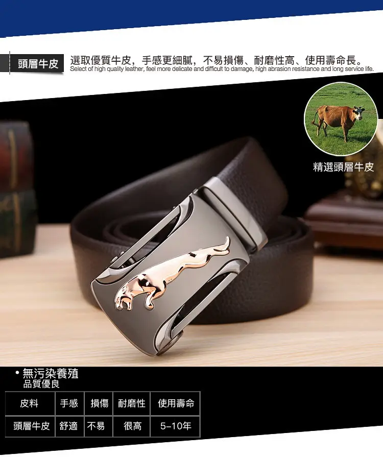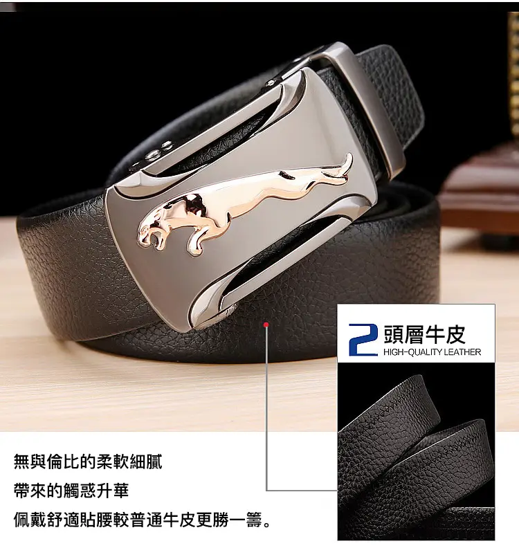 5分鐘前【官方站】男士獵豹自動扣真皮腰帶 【能用十年的真皮腰帶】 整張牛皮裁剪打造,純手工製作,耐磨耐折耐用,品質高端,彰顯男士成熟魅力