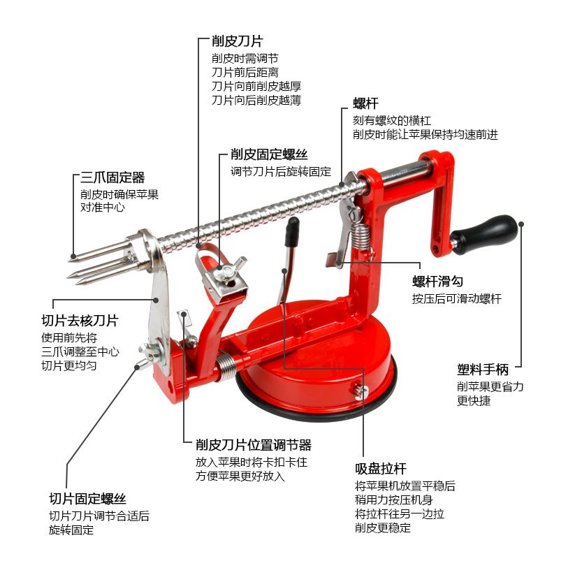 15分鐘前手搖蘋果削皮器 三合一削皮切片去核 削皮機多功能家用去皮廚房削水果神器 - 優惠價1入組NT$899